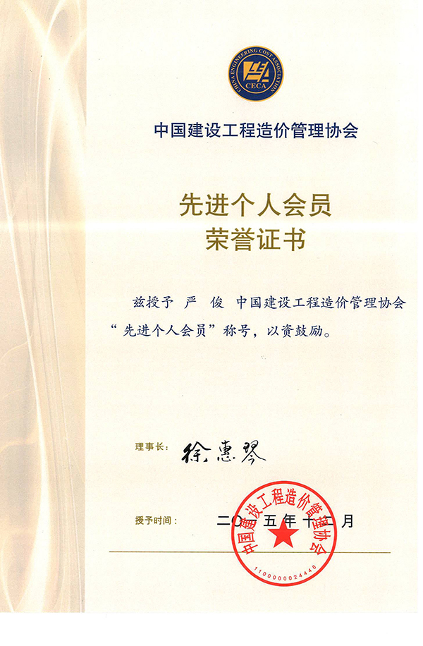 公司榮獲中國建設(shè)工程造價管理協(xié)會“2014年度先進(jìn)單位會員”稱號,湖北分公司經(jīng)理嚴(yán)俊榮獲“先進(jìn)個人會員”稱號。